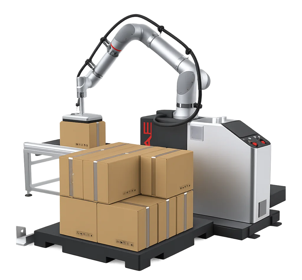 Nuestro robot paletizador inteligente combina tecnología, precisión y facilidad de uso para integrarse rápidamente en líneas de producción de diferentes sectores, permitiendo automatizar el paletizado no solo de cajas, sino de una gran variedad de productos con distintos formatos de forma rápida, segura y eficiente sin necesidad de programación.